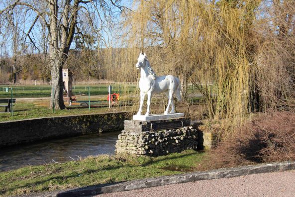 À voir : au milieu de l’Osne, le cheval Royal, dû au ciseau du célèbre sculpteur animalier Pierre Rouillard, rappelle la fabuleuse aventure de la fonderie d’art du Val d’Osne. Derrière le cheval, roue à aubes. Le lavoir aux colonnes en fonte est également à visiter.