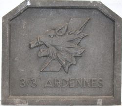 Plaque à l’emblème de l’escadron de Chasse 3/3 « Ardennes », unité de combat de l’Armée de l’air française, créé le 1er janvier 1944. Il représente une tête de sanglier de profil.