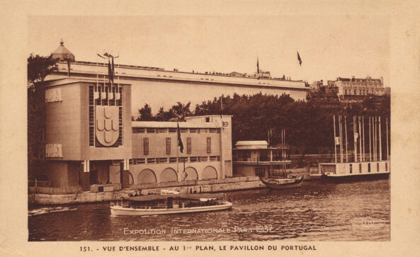 Exposition internationale Paris 1937 – Vue d’ensemble – Au 1er plan le pavillon du Portugal