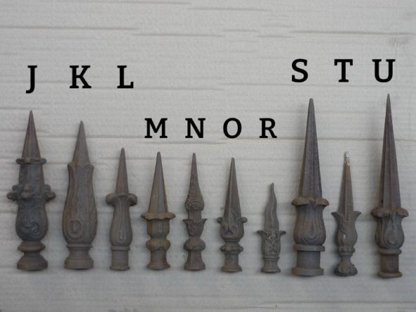 Elément d'une série de fleurons complète de "A" à "U" (modèles H, I, P et Q non référencés) - Marquage au fer de la "lettre" sous le socle, sauf élément "E" sans marquageDescription: