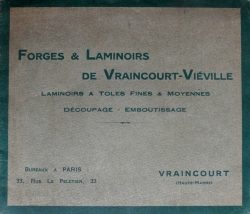 Forges et laminoirs de Vraincourt-Viéville – Laminoirs à tôles fines et moyennes – Découpage – Emboutissage