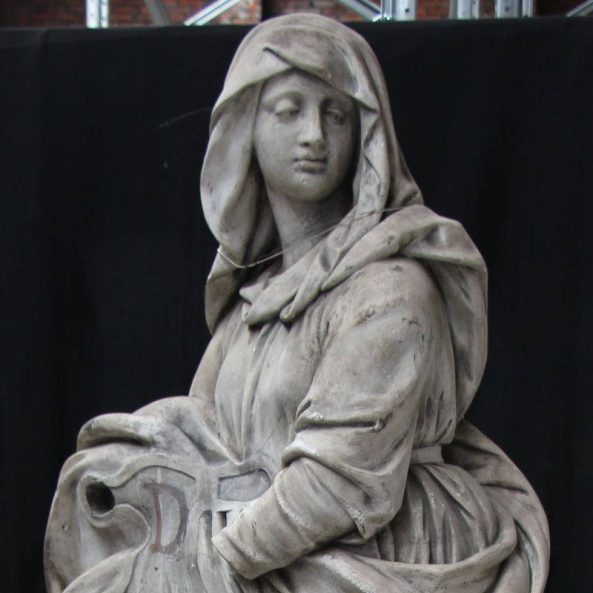 Modèle de fonderie en plâtre, mentionné dans l'inventaire de 1896 qui fait suite à la reprise des fonderies Denonvilliers par le Comptoir général des fontes d'art, de bâtiment et de fumisterie, détenu par Auguste Salin et Edmond Capitain. L'auteur percevait 10% du prix de chaque reproduction vendue. Il s'agit de la reproduction exacte du modèle de l'Archiconfrérie de Paris, en plâtre durci et installé en 1809, se trouvant dans la basilique Notre-Dame des Victoires.État de conservation