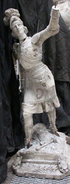 Modèle de fonderie en plâtre par Louis Fournier. Ce modèle est mentionné dans l'inventaire de 1896 qui fait suite à la reprise des fonderies Denonvilliers par le Comptoir général des fontes d'art, de bâtiment et de fumisterie, détenu par Auguste Salin et Edmond Capitain. L'édition du modèle a été conclue par traité en date du 29 septembre 1894 avec le sculpteur (42 rue de Lerme à Bordeaux). L'auteur percevait 20% du prix de chaque reproduction vendue. Une reproduction en bronze est visible à Patay (Loiret), ainsi qu'une seconde en fonte de fer à Beaugency (Loiret).Manque(s)