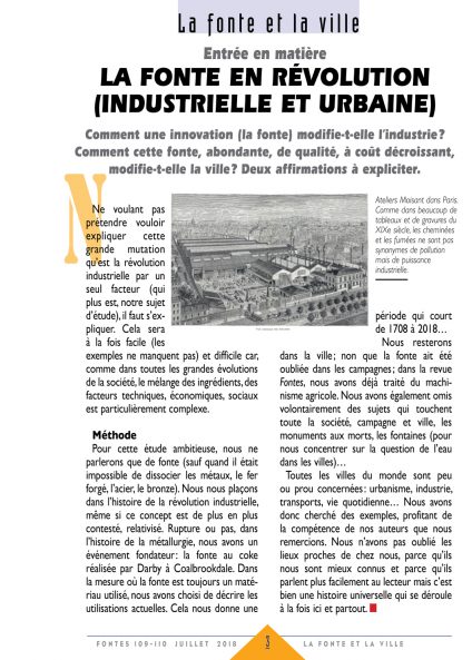 PARTIE 1 – ENTRÉE EN MATIÈRE – LA FONTE EN RÉVOLUTION (INDUSTRIELLE ET URBAINE)