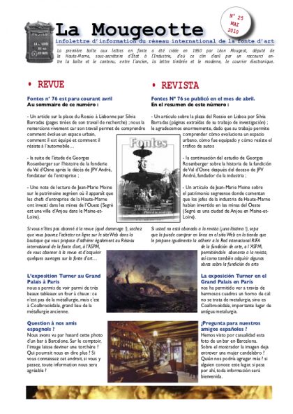 Magazine n° 25 accompagnant la newsletter du réseau international de la fonte d’art – Mai 2010
