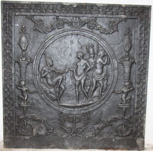 Il s’agit sans doute d’une plaque au sommet cintré agrandie. Elles présente les armes de France couronnées et entourées de rameaux d’olivier.