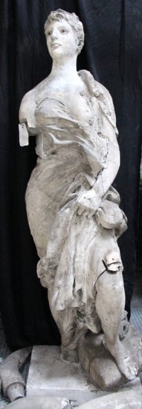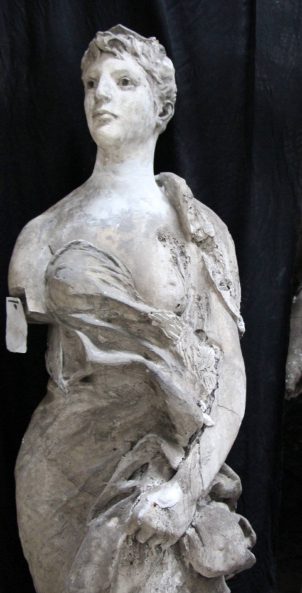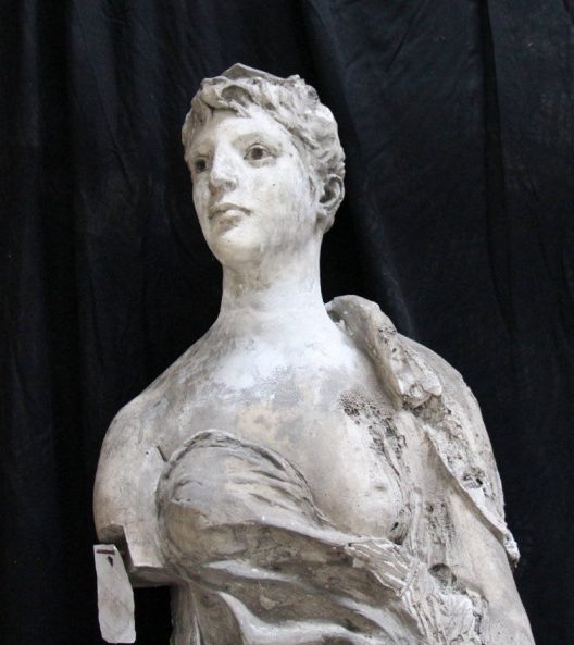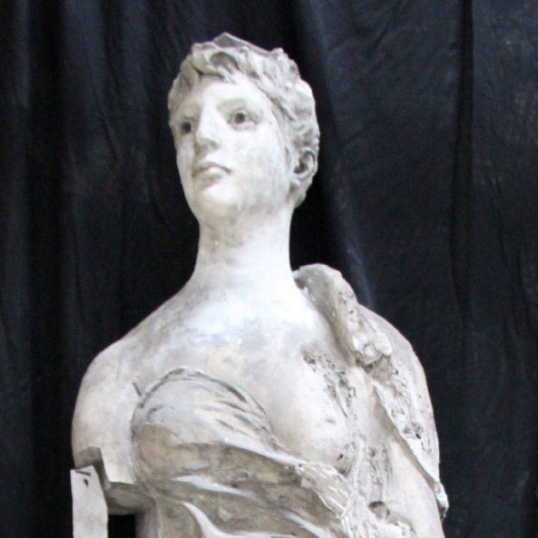 Modèle de fonderie en plâtre représentant le commerce sous les traits d’une femme, en pied, tenant une bourse dans sa main gauche.