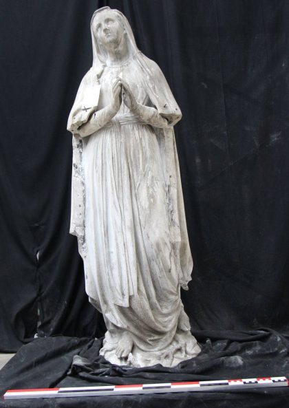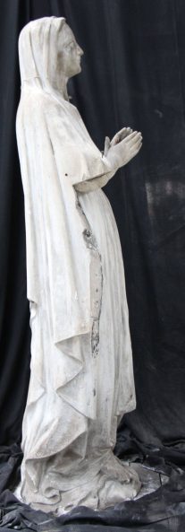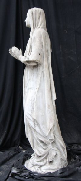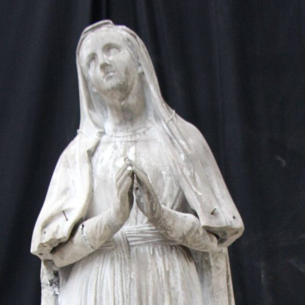 Modèle de fonderie en plâtre représentant Notre-Dame de Lourdes, en pied, la tête levée.