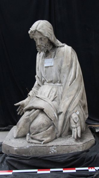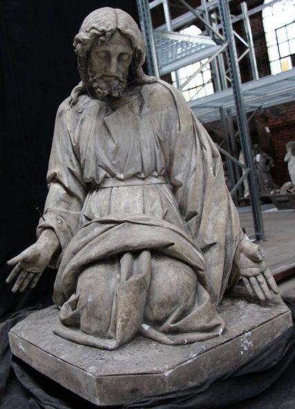 Modèle de fonderie en plâtre représentant saint Joseph agenouillé, en prière.