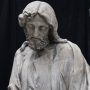 Reproduction en fonte de fer représentant saint Vincent de Paul, en pied, tenant une croix dans sa main droite (mutilée).