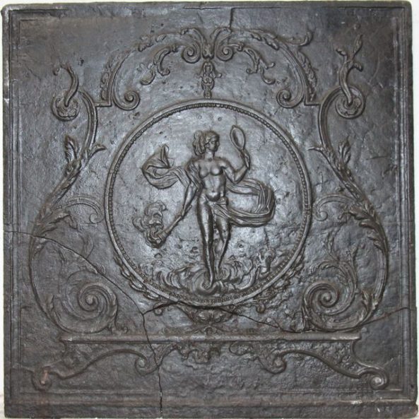 Richement ornée, cette plaque présente un encadrement de cœurs affrontés et stylisés à l’intérieur duquel l’espace est divisé en trois parties séparées de pilastres ronds […]